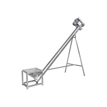 利用電機(jī)為動(dòng)力螺旋式輸送,將攪拌好的原料輸送到擠壓機(jī)的喂料斗內(nèi);設(shè)備具有上料方便快捷,節(jié)省人工,效率高等特點(diǎn)。